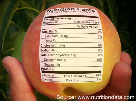 If you’re a “label reader,” you’ll be able to tell from the photo that in addition to being a good source of dietary fiber, one large peach is also a significant source of Vitamin A and Vitamin C. What this label doesn’t show is that one peach is also a great source of potassium—and available locally, whereas bananas are far from local for us North Carolinians.